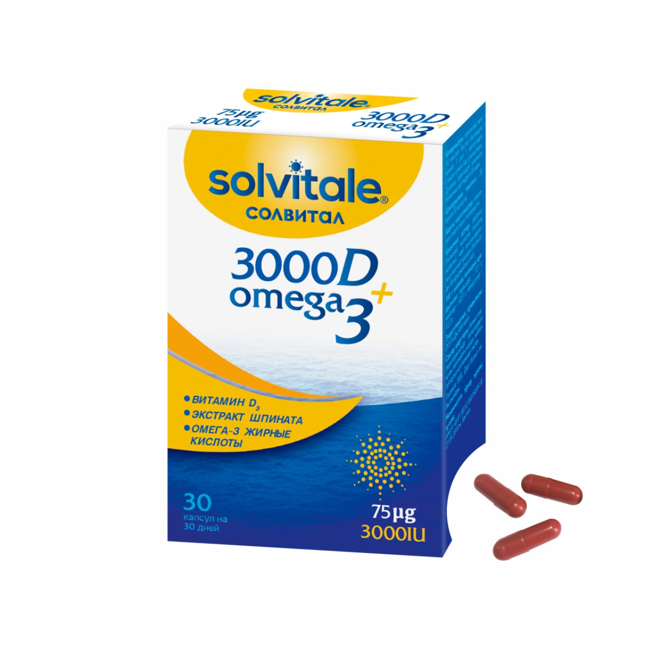 СОЛВИТАЛ – это натуральный комплекс витамина D3 с Омега-3 и экстрактом шпината для повышения жизненного тонуса, укрепления иммунитета, здоровья костей и суставов, сердечно-сосудистой и нервной систем.